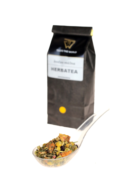 Kamillás gyógynövénytea-keverék bodzavirággal és bogyós gyümölcsökkel. A keverékben körömvirág és rózsaszirom is van; ezek felenek a szemet gyönyörködtető látványért.