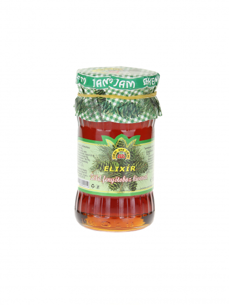 zöld fenyőtoboz kivonat 30ml/100g, glukóz fruktóz szirup, cukor, étkezési citromsav.