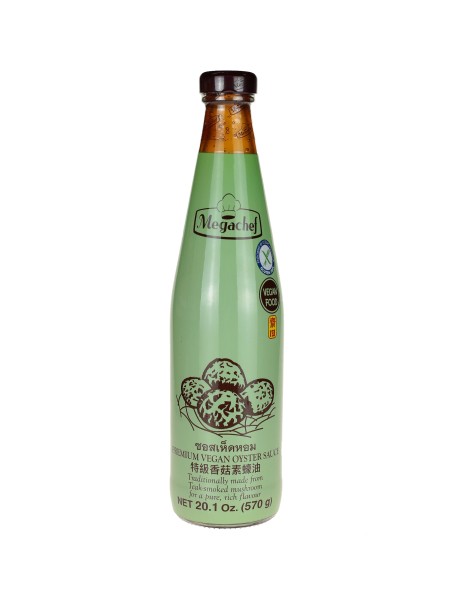Glutén- és MSG-mentes, thai vegán osztrigaszósz, teakfa-füstölésű shiitake gombából. Hagyományos készítésű: a gombát nyers barna cukorral és tengeri sóval forralták be egy sűrű, krémes, selymes, fényes szósszá, amely enyhén édeskés-sós, földes tónusú, és rendkívül gazdag umamiban. Egy természetes glutamátsűrítmény, kiváló természetes ízfokozó, bármihez is legyen hozzáadva.