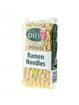bio búzaliszt, víz, só, kurkuma, sűrítőanyag: E412; térfogatnövelőszer: E500