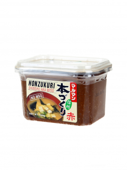 MSG-mentes, Shinshu akamiso vagy vörös (sötét) miso, fermentált rizsből és szójababból. A Shinshu elnevezést elméletileg csak azoknál a Nagano prefektúrában (Japán) készített miso-knál használhatják, amelyeket meghatározott hagyományos módszerekkel és alapanyagokból állítanak elő. Az az összezavaró, hogy manapság teljesen kaotikusan használják az elnevezéseket, és a gyors készítésű miso-kat is hívják Shinshu-nak, így a miso-k kategorizálásával kapcsolatosan a név sokszor nem mérvadó.