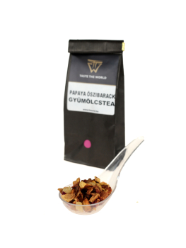 almadarabok, savanyított almardarabok (alma, savanyítószer: E330), ananászkocka (ananász, cukor), papayakocka (papaya, cukor), őszibarackkocka (őszibarack, rizsliszt), aroma, fagyasztva szárított őszibarackdarabok (őszibarack, cukor), rózsavirág, pórsáfrány, körömvirág