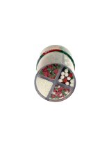 cukor, dextróz, kukoricakeményítő, búzakeményítő, maltodextrin, növényi olaj (pálma), glükózszirup, csomósodást gátló anyagok: E470b, E551; sűrítőanyag: E414; fényezőanyag: E904, E903; emulgeálószer: E322 (szója); sűrített almalé, sárgarépalé koncentrátum, lila édesburgonya kivonat, színezék: E101, E100, E133