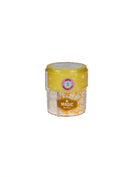 cukor, dextróz, kukoricakeményítő, glükózszirup, növényi olaj (pálma), maltodextrin, búzakeményítő, csomósodást gátló anyagok: E470b, E551; sűrítőanyag: E414; fényezőanyagok: E904, E903; emulgeálószer: E322 (szóját tartalmaz); sűrített almalé, sárgarépalé-koncentrátum, színezék: E100, E150a, E101