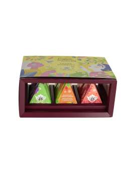 Háromféle bio teát tartalmaz: bio alma-csipkebogyó-fahéj herbatea (4 db); bio jázmin zöld tea (4 db); bio citromfű-citrus-gyömbér tea (4 db).