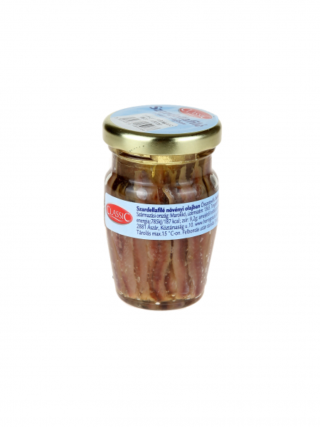 bőrözött, sózott szardellafilé* (szardella (Engraulis encrasicolus)), só 56%, napraforgóolaj 44%
