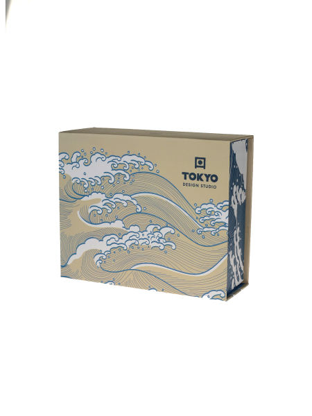 Porcelán szaké szett, Hokusai (Kanagawa hullám és Fuji hegy) díszítéssel. Díszdobozban.