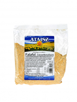 Falafel fasírtpor. Tojás-, tej-, GMO-mentes termék, nem tartalmaz sót.