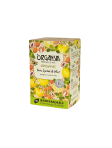 bio fekete tea 33%, bio gyömbér 18%, bio fahéj 13%, bio kurkuma 7%, bio kardamom 7%, bio szegfűszeg 6%, bio szerecsendió 6%, bio fekete bors 5%, bio szerecsendió-virág 4%