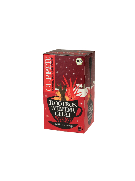 Rooibos alapú, melegítő, fűszeres chai. Koffeinmentes, ezért a nap bármely szakában fogyasztható! Kóser, bio és FairTrade készítmény.