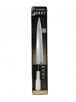 Ez a sashimi szeletelő kés egy yanagiba, szó szerinti jelentése szomorúfűz levél penge, utalva a penge egyedi és tipikus alakjára és tulajdonságaira - hosszú, keskeny, nagyon éles. Japánból származik, a késgyártásáról híres Seki városából. Oszakai stílusú, mivel a vége hegyes, szemben a tokiói stílusúval, melynek hegye szögletes.