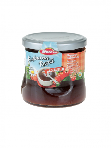 csipkebogyó 45%, cukor, glükóz, savanyúságot szabályozó anyag: citromsav (E330); zselésítőanyag: pektin (E440)