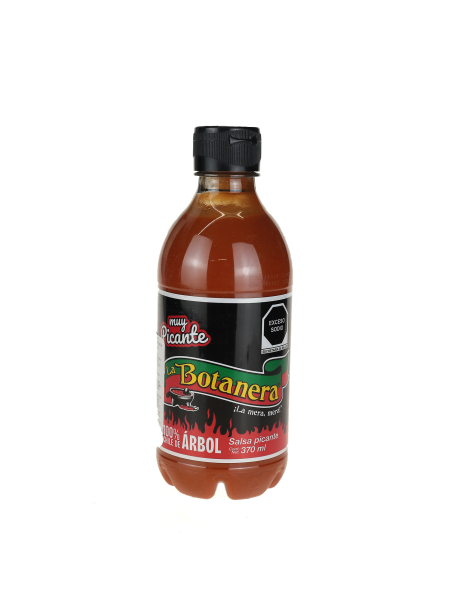 víz, chili (árbol), savanyúságot szabályozó anyag: E280; jódozott só, sűrítőanyag: E415; tartósítószer: E211 (1%); fűszerek, színezék: E100*, E129*
