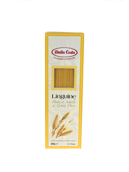 Bronzon húzott, durumbúzalisztből készült, olasz linguine. Vegán, adalékanyagmentes termék.