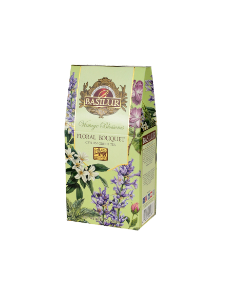 Szálas, virágokkal kevert ceyloni zöld tea.